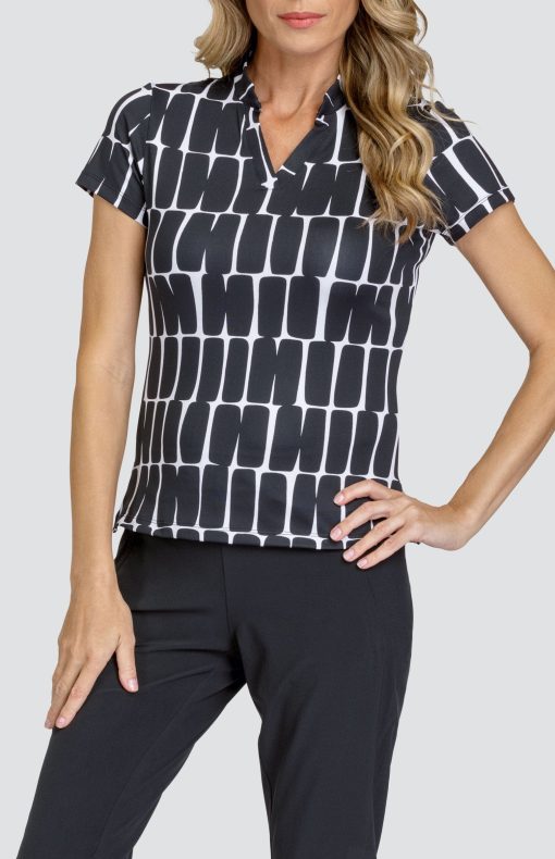- Short Sleeve Top with Open Mini Mock Neck and Vents