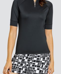 - Quarter-zip short sleeve golf top with funnel neck and inserts.