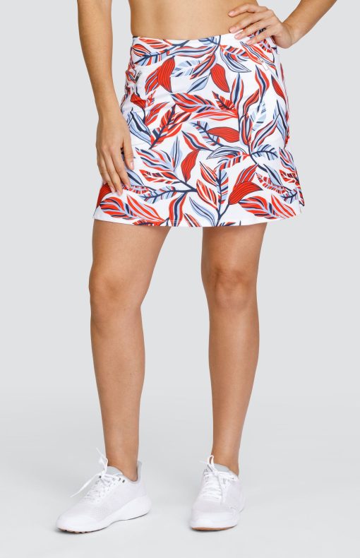 From our Divine Galleria collection. The pull-on 18″ Isma golf skort creates smooth lines with no waistband and a flounce hem. All of our skorts come with pockets for storing valuables and built-in shorties for no-ride coverage. Moisture-wicking Performance Jersey keeps you dry and comfortable as you play.