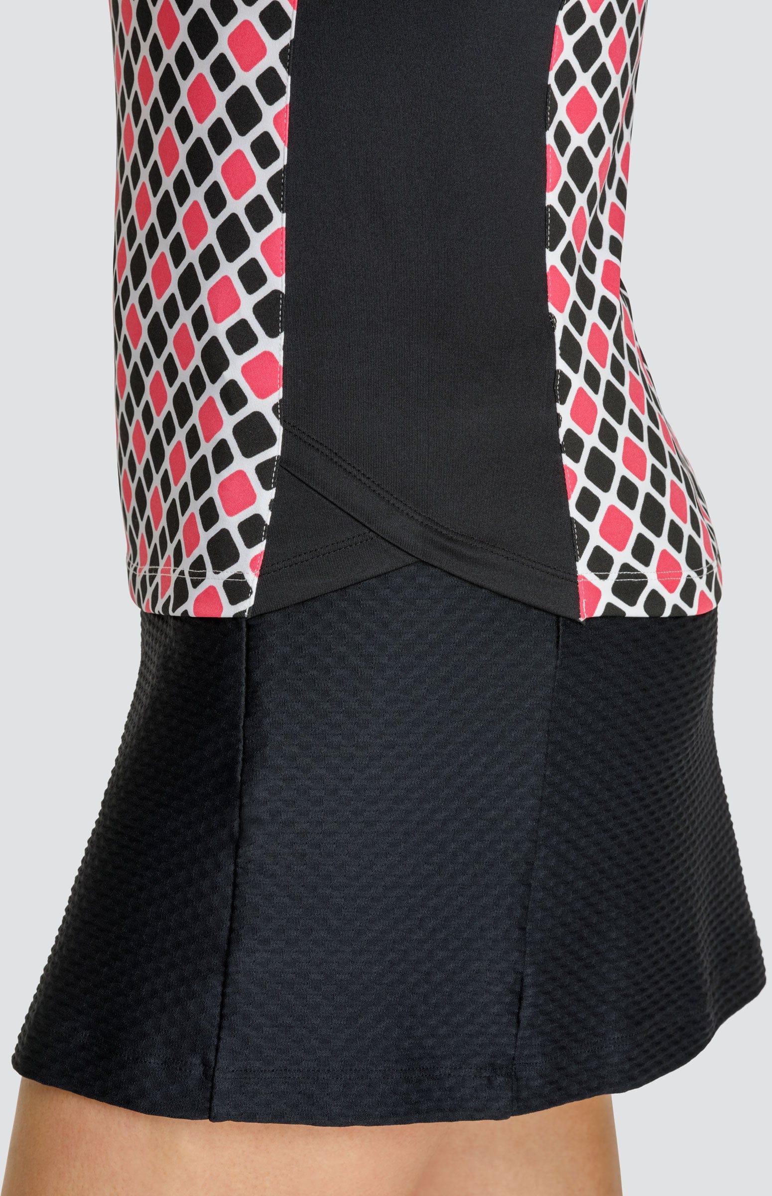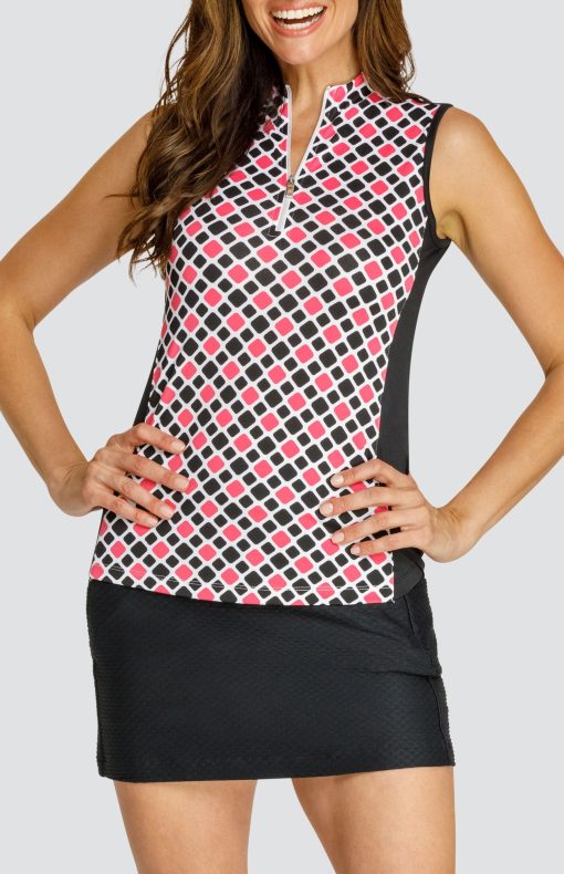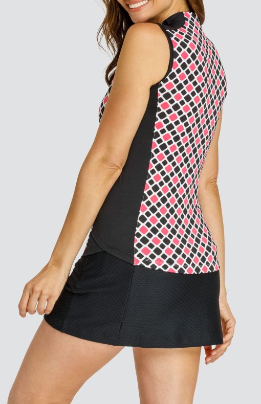 The quarter-zip sleeveless Coralis golf top features a funnel neck, curved hem, and contrasting side and shoulder inserts in Onyx Black. Made with our wrinkle-resistant, moisture-wicking Performance Jersey fabric, it will continue to be a staple in your wardrobe wash after wash. And the UPF 50+ protective technology that is built-in to the fabric will give you peace of mind as you play under the sun’s harmful rays.