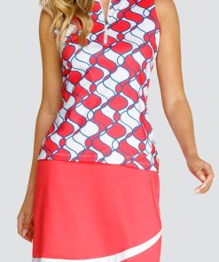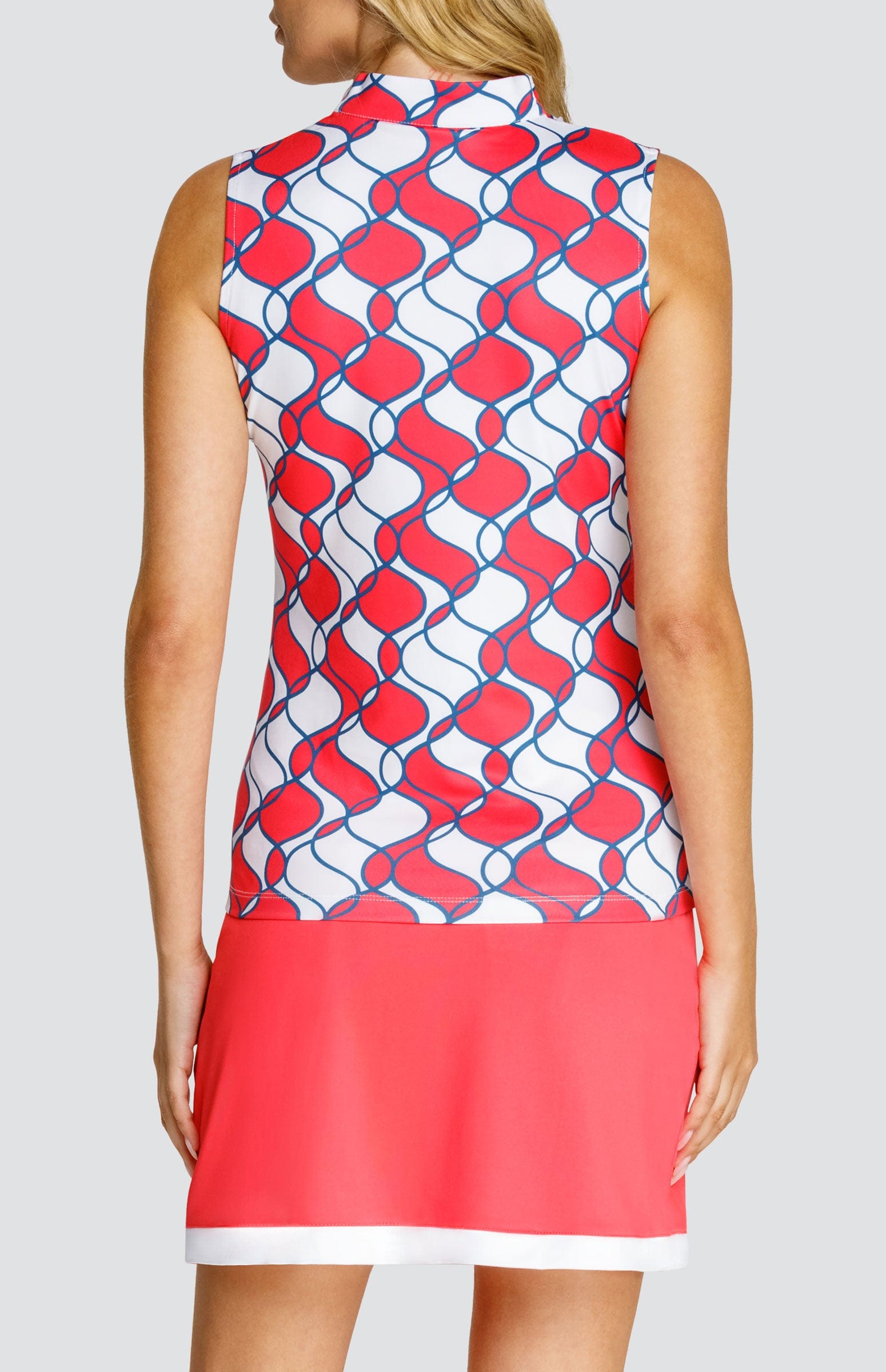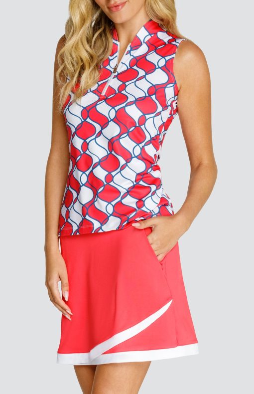 The Devyn sleeveless golf top features a mandarin funnel neck and a faux wrap hemline. Made with our wrinkle-resistant, moisture-wicking Performance Jersey fabric, it will continue to be a staple in your wardrobe wash after wash. And the UPF 50+ protective technology that is built-in to the fabric will give you peace of mind as you play under the sun’s harmful rays.
