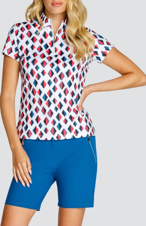 The Erandi short sleeve golf top features a squared mini mock neck and vents. Made with our wrinkle-resistant, moisture-wicking Performance Jersey fabric, it will continue to be a staple in your wardrobe wash after wash. And the UPF 50+ protective technology that is built-in to the fabric will give you peace of mind as you play under the sun’s harmful rays.