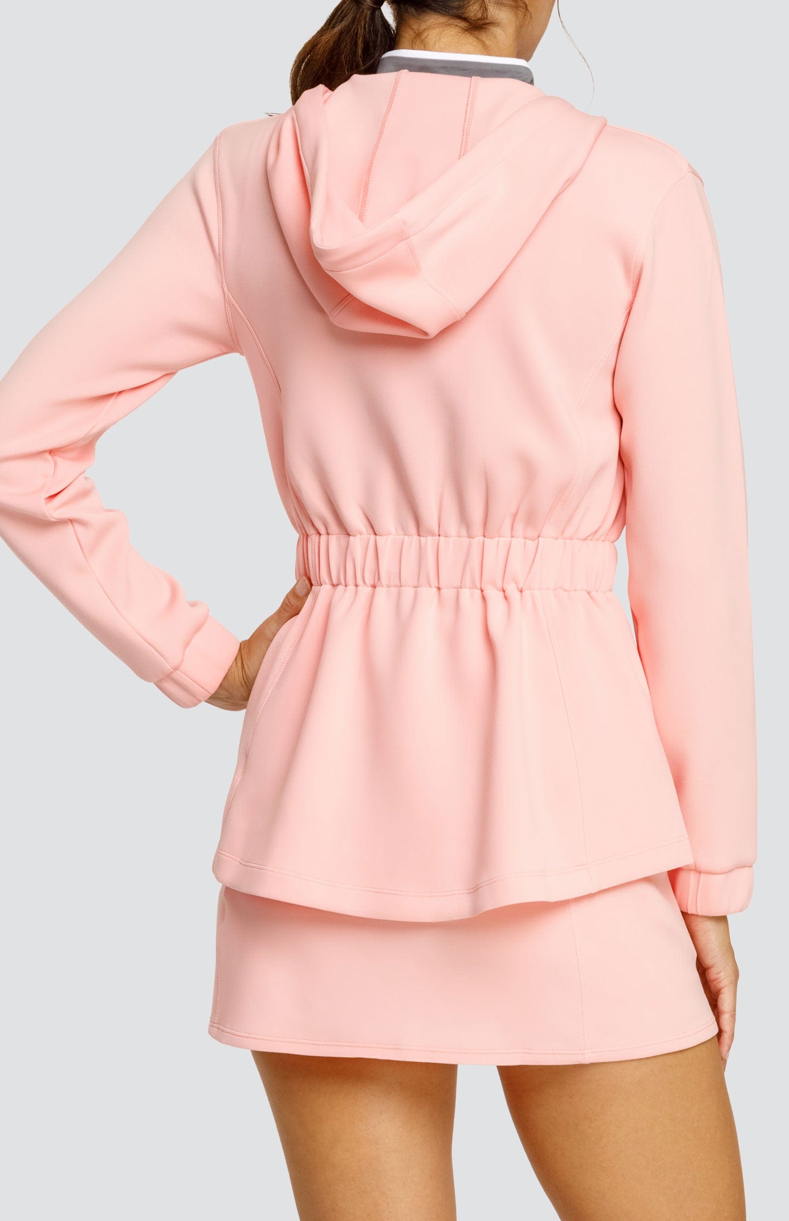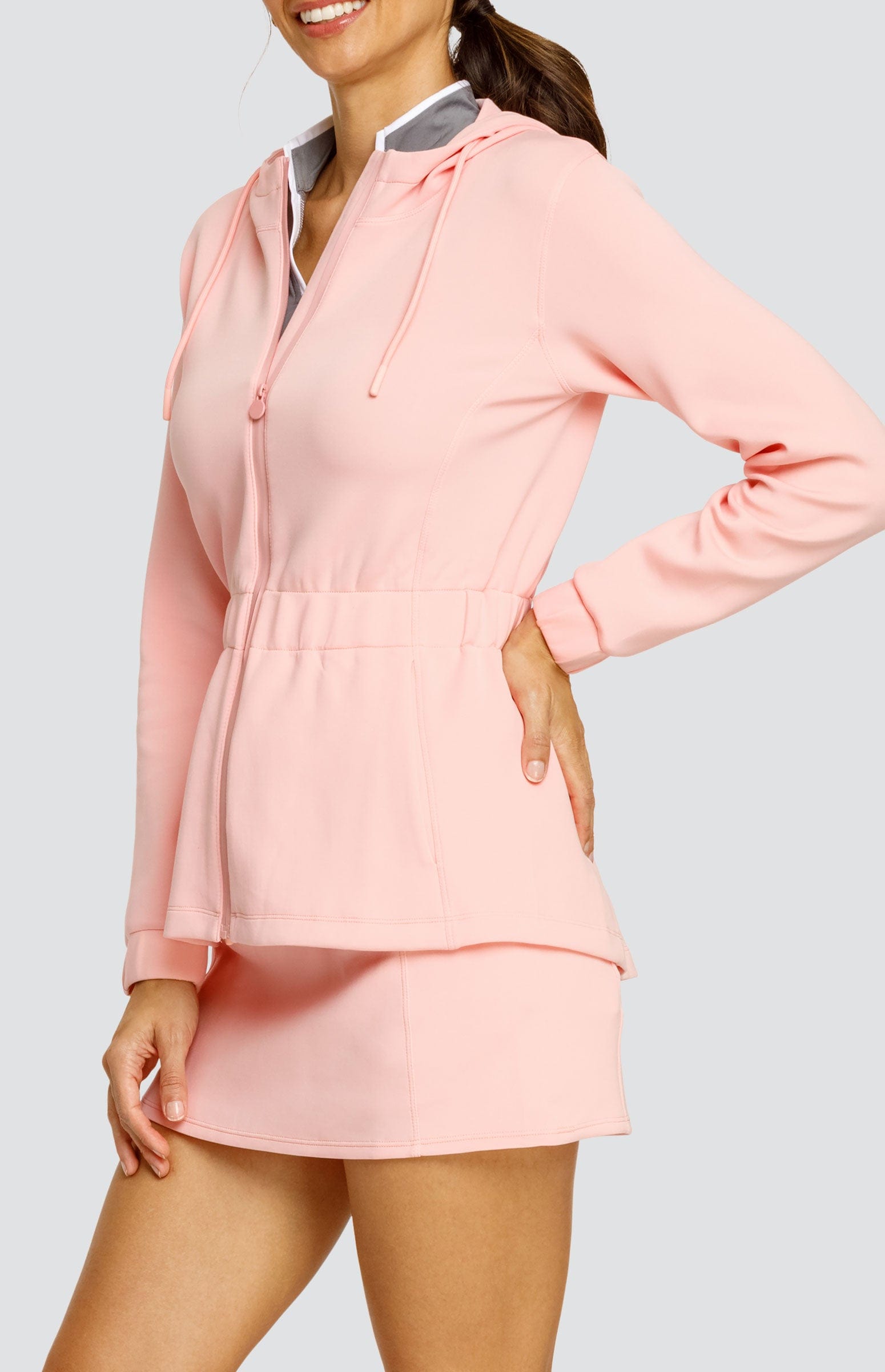 You’ll feel like you’re floating on clouds in the Robyn hooded jacket, featuring a drawcord hood, elastic cinched waist, peplum high-low hemline, and pockets. Made with our soft and luxurious Cloud Jersey fabric, it will continue to be a staple in your wardrobe wash after wash. And the UPF 50+ protective technology that is built-in to the fabric will give you peace of mind as you play under the sun’s harmful rays.