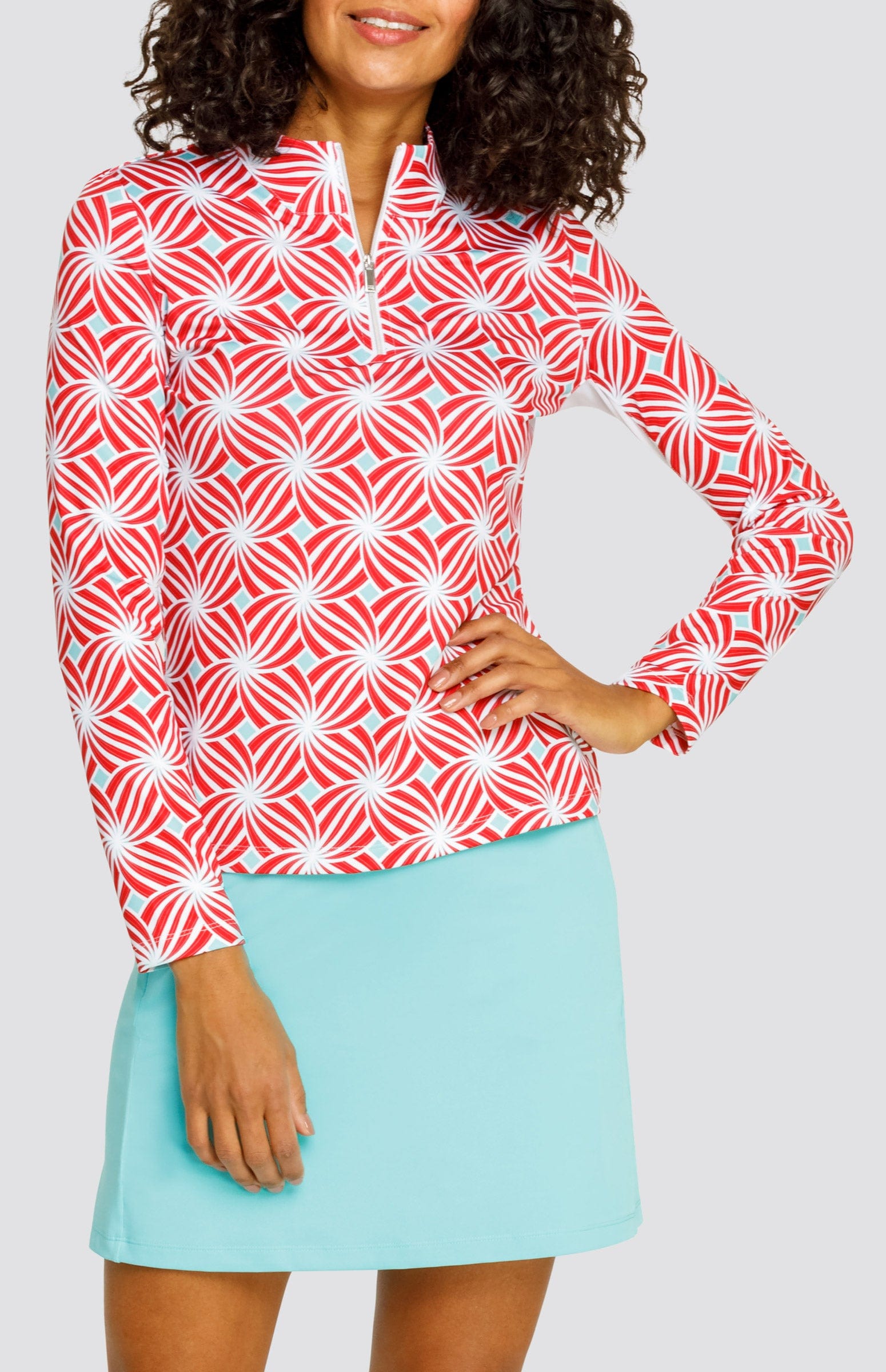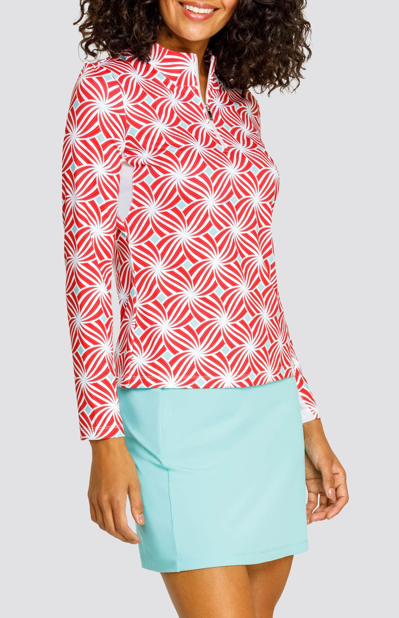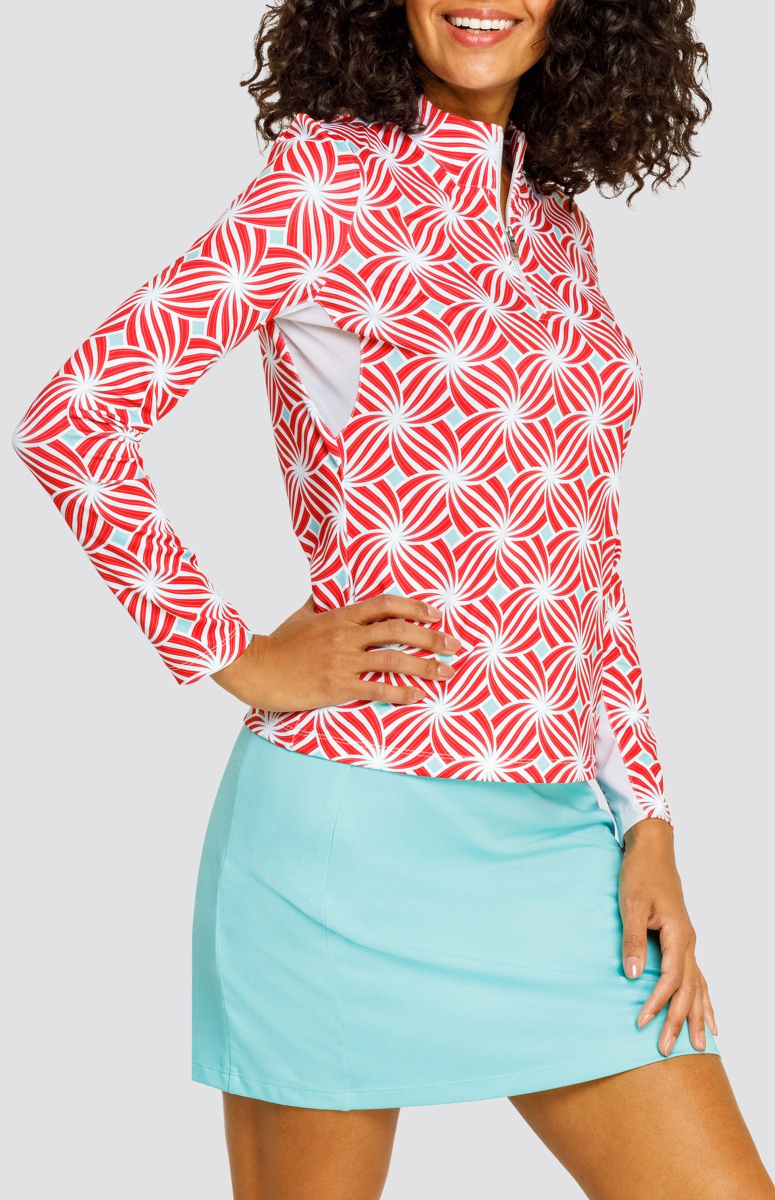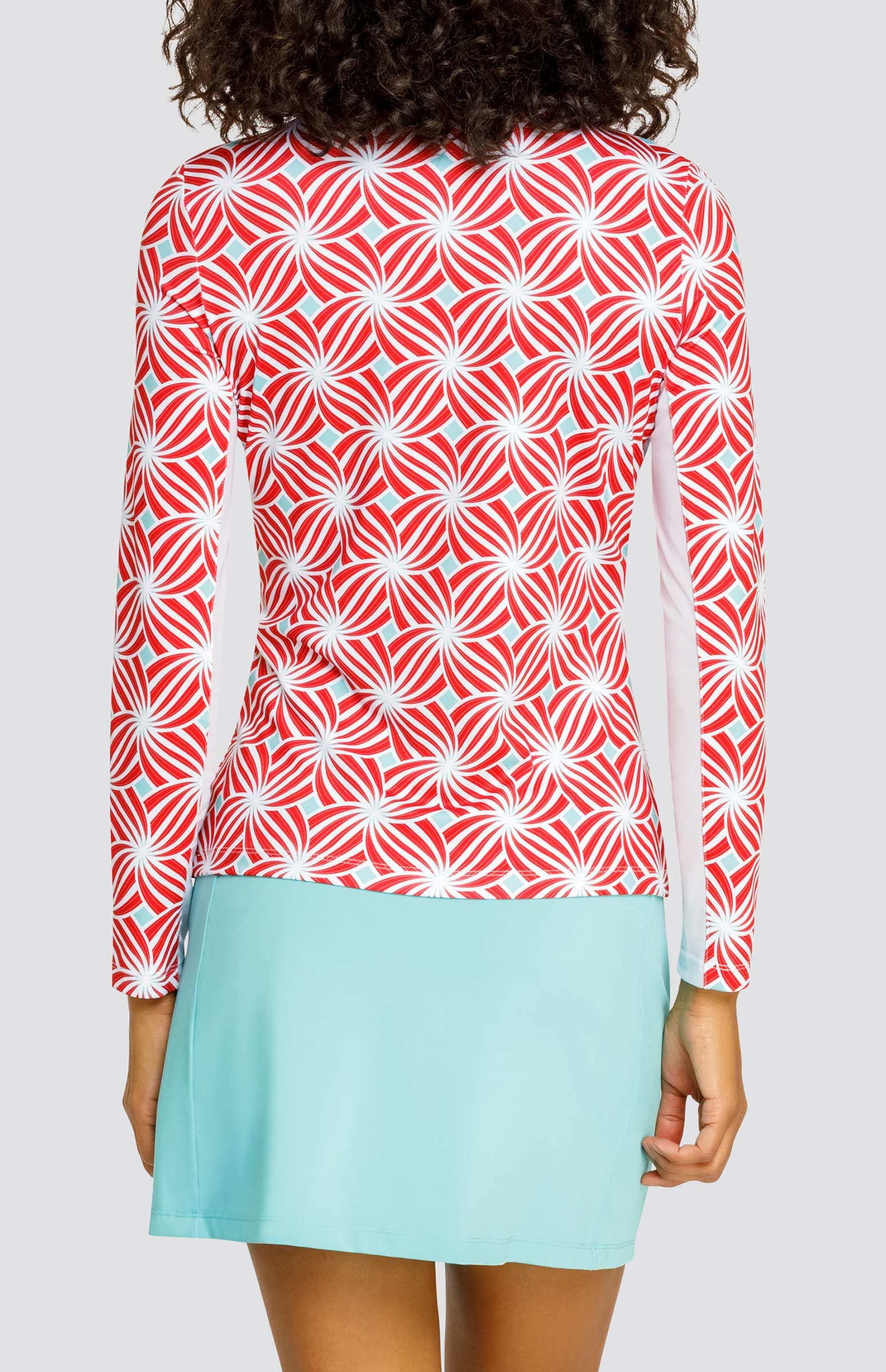 Stay dry and cool in our Nashla long sleeve golf top, featuring a squared mini mock neck and power mesh undersleeve inserts. Made with our wrinkle-resistant, moisture-wicking Performance Jersey fabric, it will continue to be a staple in your wardrobe wash after wash. And the UPF 50+ protective technology that is built-in to the fabric will give you peace of mind as you play under the sun’s harmful rays.
