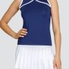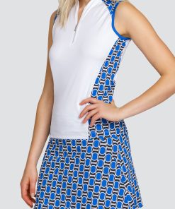 From our Palm Blooms collection. The Novelia sleeveless golf top combines solid Chalk White with striking printed inserts, perfect for pairing with a matching skort. The novelty neckline adds interest to your outfit while you stay dry and cool in our Performance Jersey.