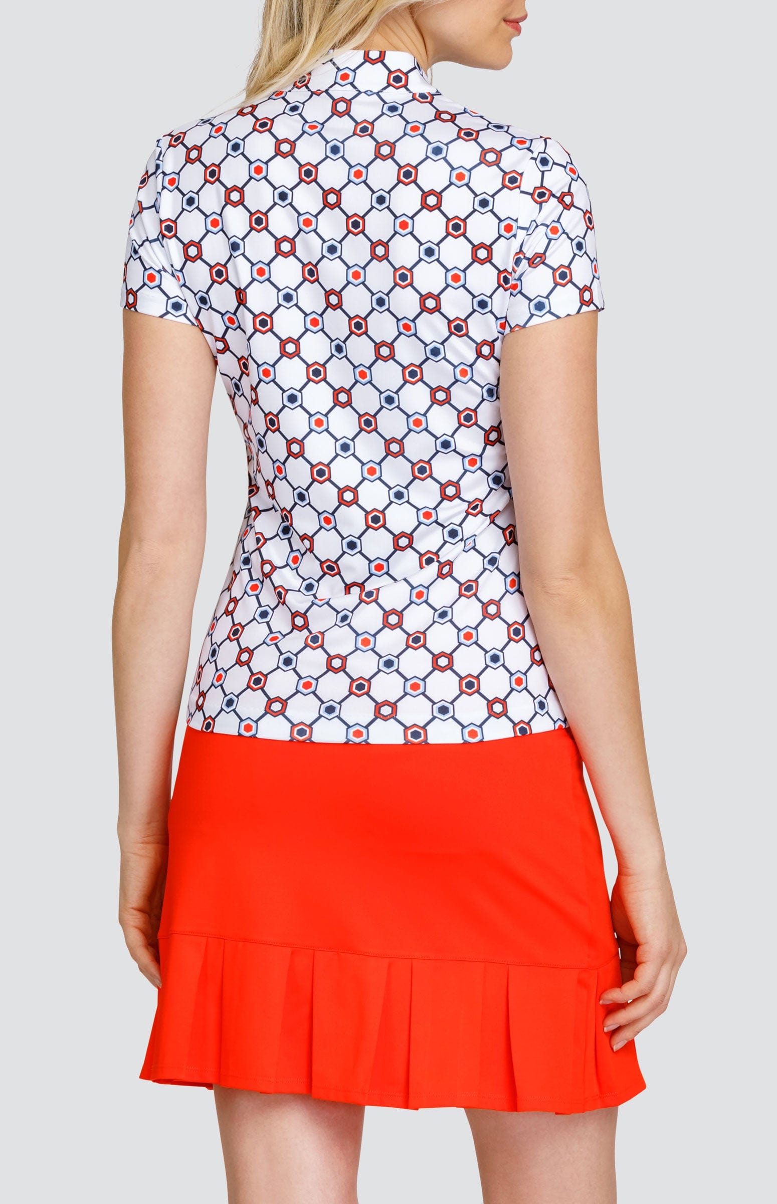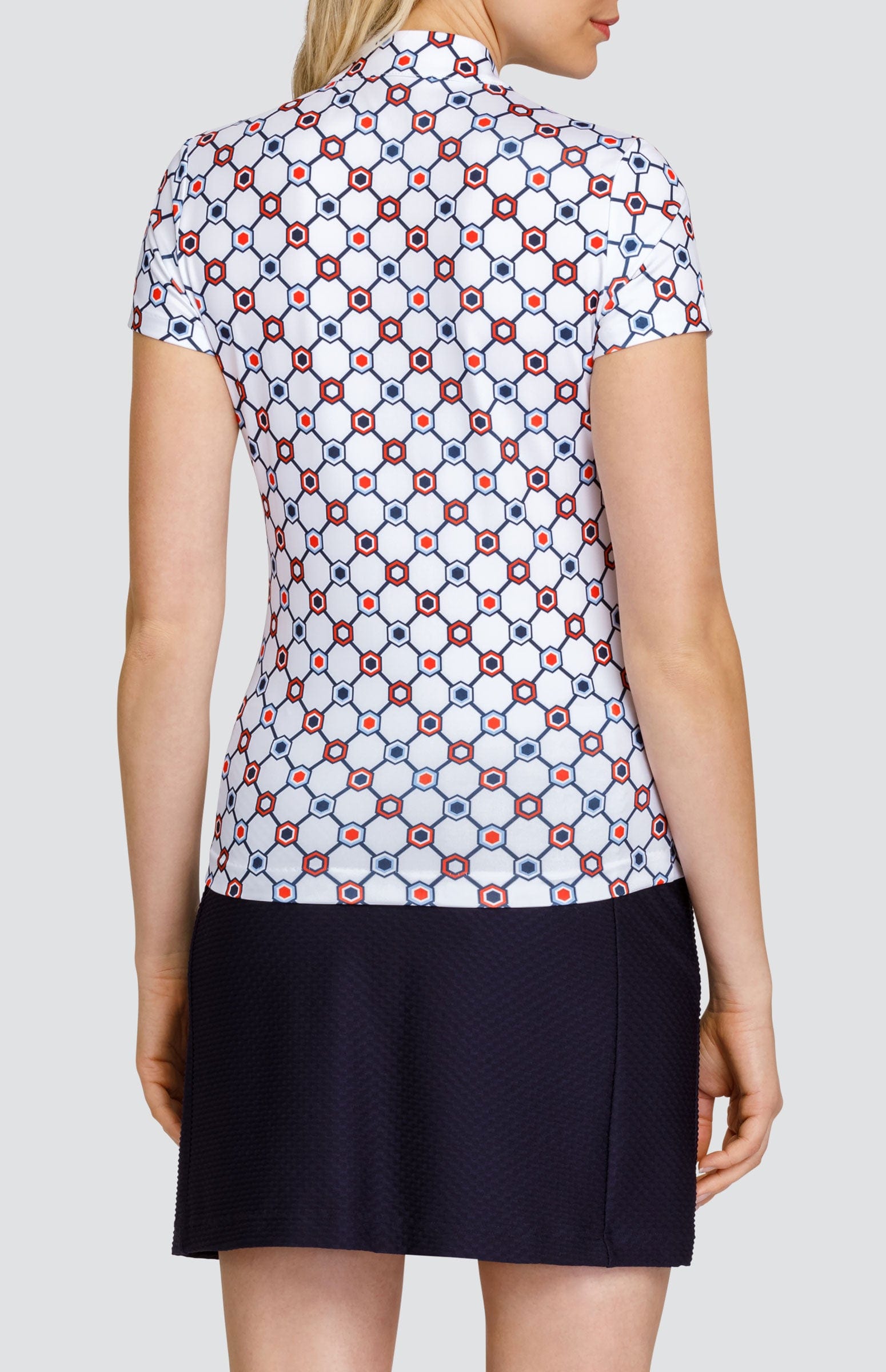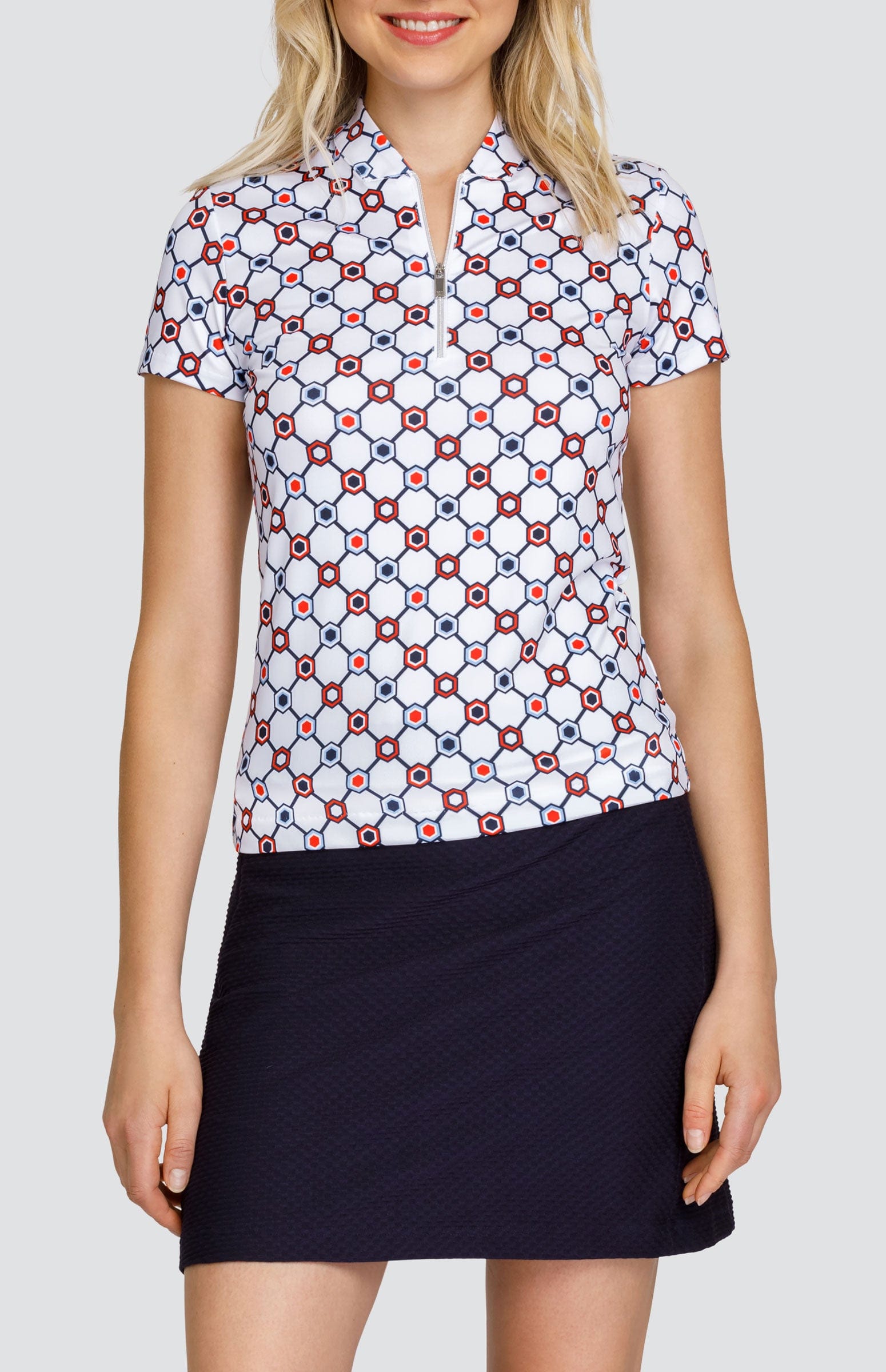 From our Divine Galleria collection. The quarter-zip short sleeve Rosalia golf top features 6.5″ sleeves and a V-Mini Mock neck. Moisture-wicking Performance Jersey keeps you dry and comfortable as you play.