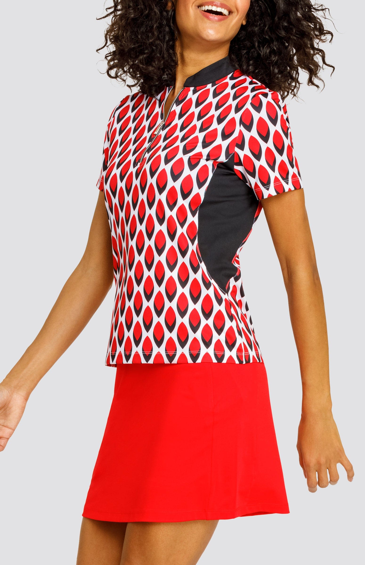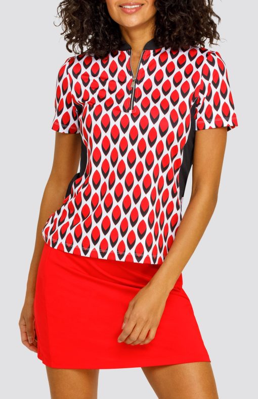 - Quarter-zip short sleeve golf top with mandarin collar and vents