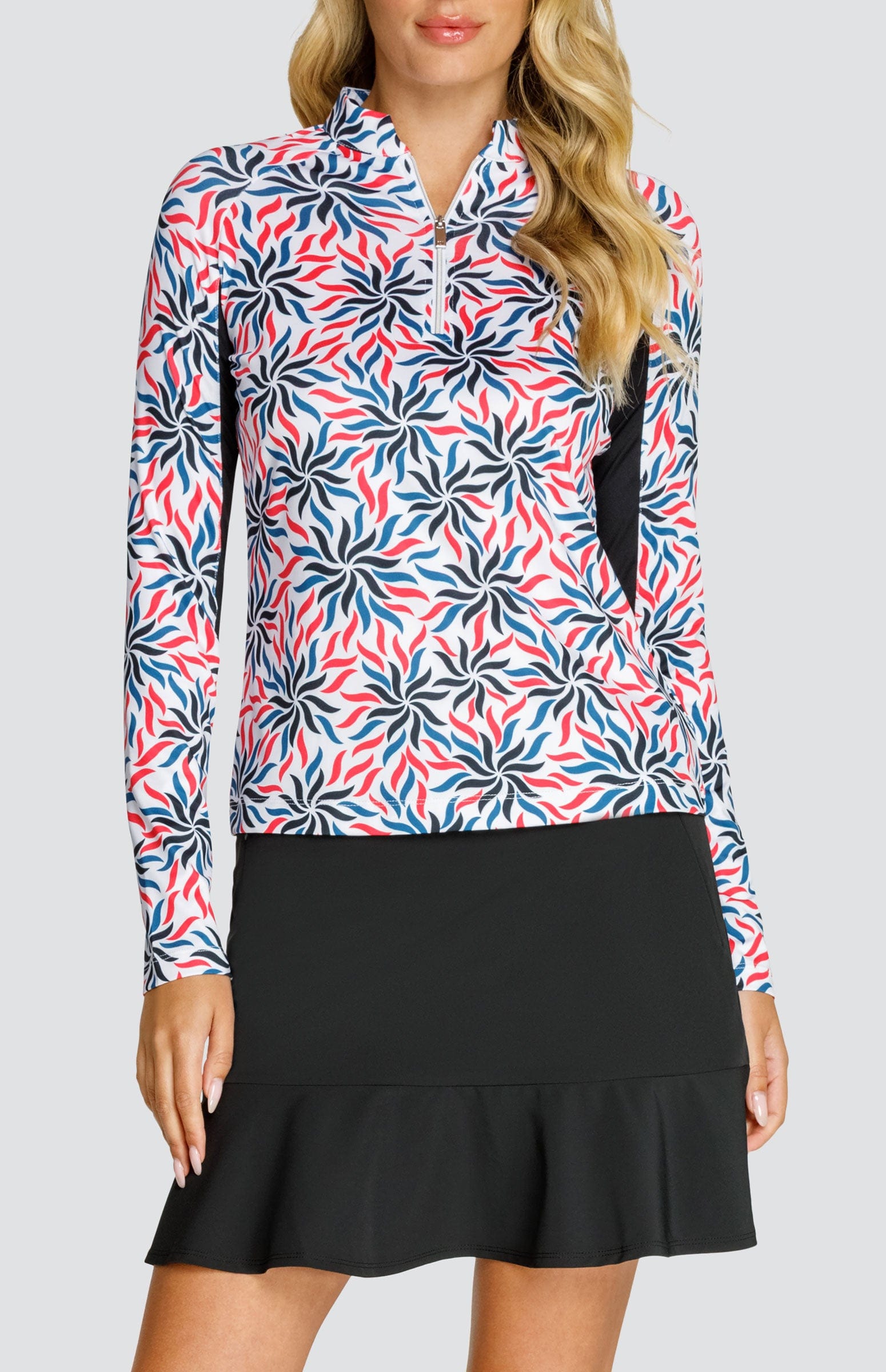 The Shalia long sleeve golf top features a notched collar, raglan sleeves, and undersleeve inserts. Made with our wrinkle-resistant, moisture-wicking Performance Jersey fabric, it will continue to be a staple in your wardrobe wash after wash. And the UPF 50+ protective technology that is built-in to the fabric will give you peace of mind as you play under the sun’s harmful rays.