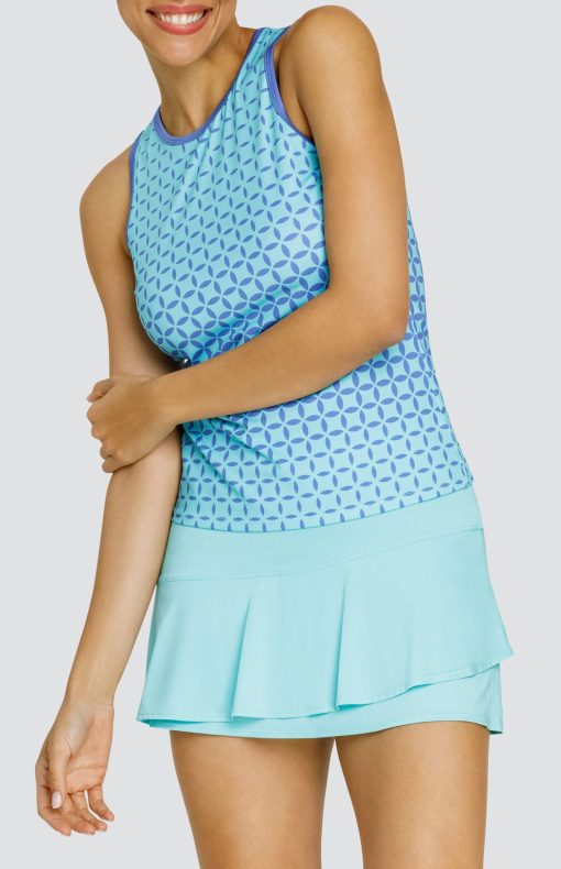 The Joely tank is simplicity in its finest, featuring a crew neck. Made with our wrinkle-resistant, moisture-wicking Bliss Jersey fabric, it will continue to be a staple in your wardrobe wash after wash. And the UPF 50+ protective technology that is built-in to the fabric will give you peace of mind as you play under the sun’s harmful rays.