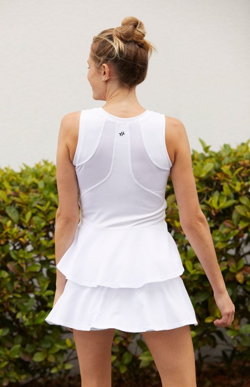 From our Tail Active collection. If you love our best-selling Rachel Jacket, then you will love the flirty Rach Tank. Mirrored inserts in Oval Mesh give the Rach a feminine touch, and the fun, flouncy back insert creates movement as you serve, slice, and smash on the court.