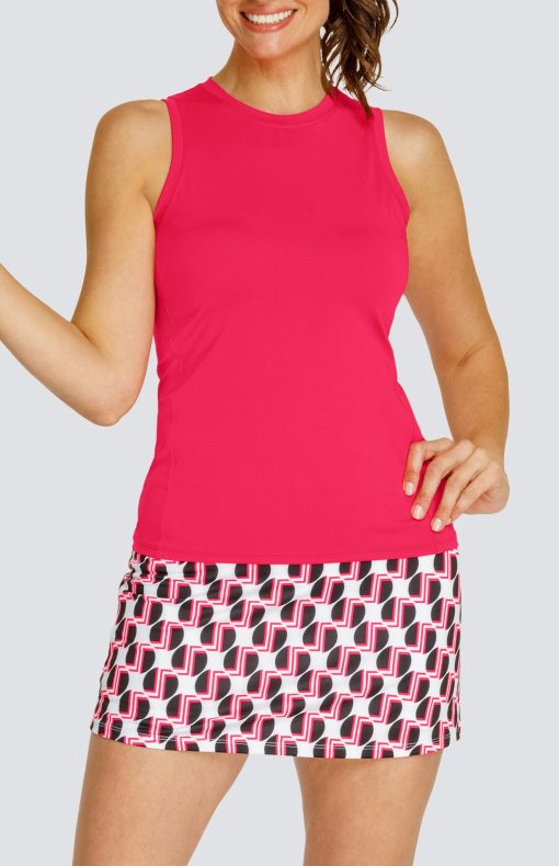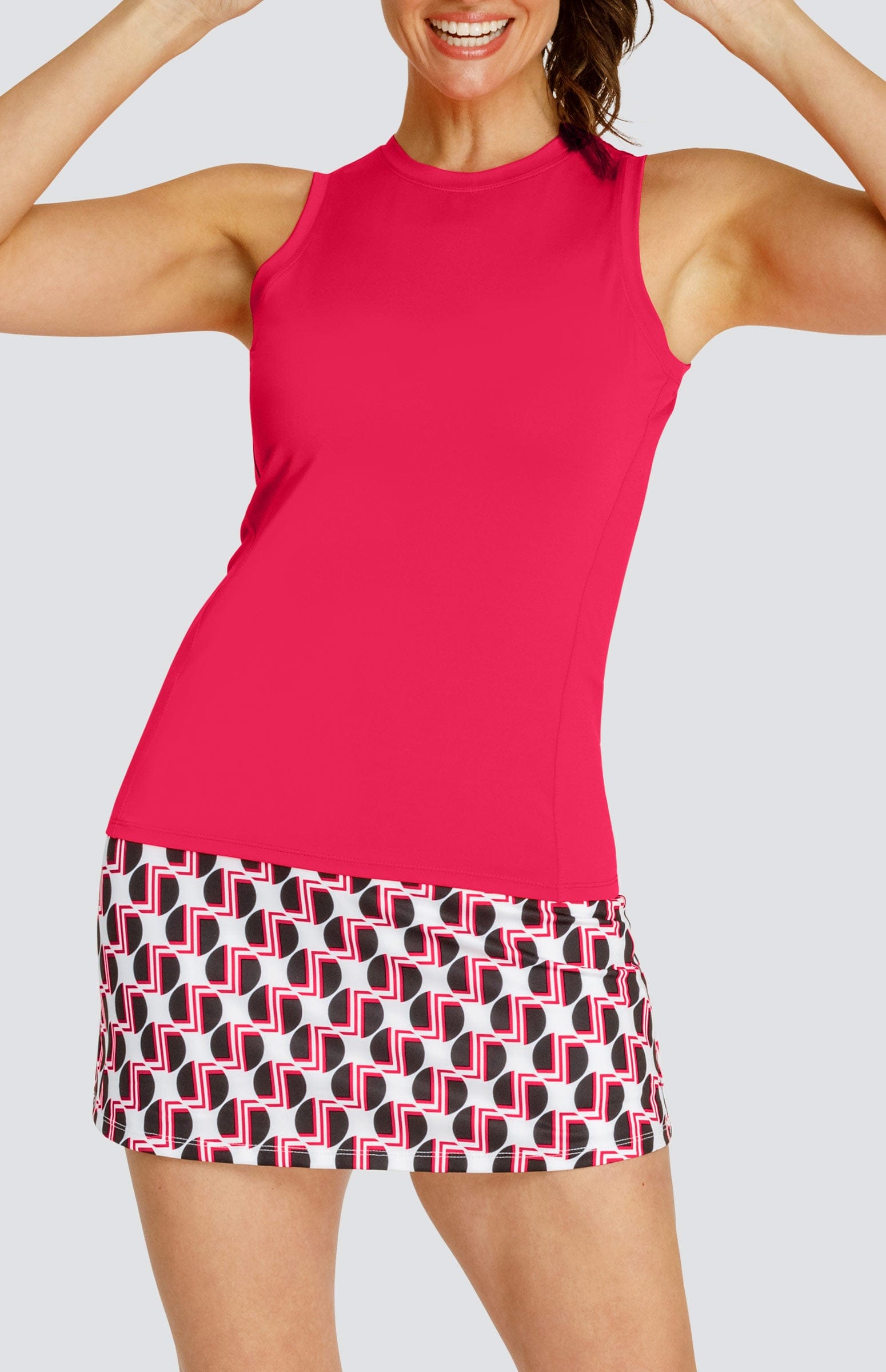 The Yolie tennis tank top features a crew neck and side panels for a slimming effect. Made with our wrinkle-resistant, moisture-wicking Bliss Jersey fabric, it will continue to be a staple in your wardrobe wash after wash. And the UPF 50+ protective technology that is built-in to the fabric will give you peace of mind as you play under the sun’s harmful rays.